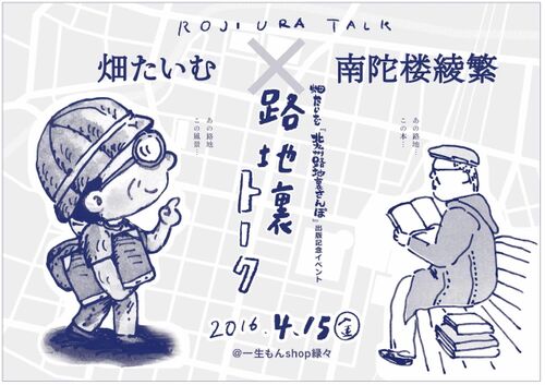 『畑たいむの北九州路地裏さんぽ』(2016年3月発行、リセット出版) ≪雲のうえのしたで主催≫ 畑たいむ『北九州路地裏さんぽ』出版記念イベント 「畑たいむ×南陀楼綾繁 路地裏トーク」 いまだ懐かしい風景を残す路地裏あり もはや消えてしまった路地裏あり あ…